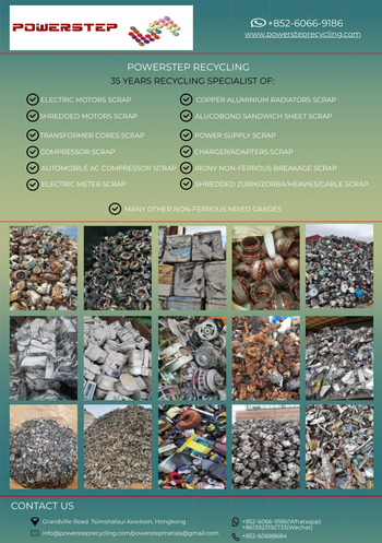 - aluminium scrap (any grades) including irony aluminium or shredded aluminium scrap grades