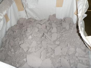 From our sanding process we produce fines collected by the filter press. The product is over 80% ATH, with some remnants of peroxide, PMMA and MMA. Overall the filler has 20-40% moisture. We generate give or take about 18-24 bulk bags per 24 hours – depends on product and filter press efficiency. Filled bulk bags weigh between 500-660 lbs. In five days we approximately generate around 28 tons.
